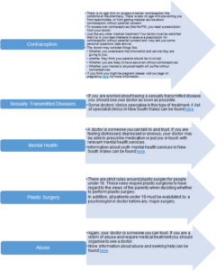 You or your parents may also have registered for a My Health Record. A My Health Record will contain certain health information you or your parents choose to include in it. It may include details of claims made for Medicare benefits, claims for pharmaceutical benefits, organ donor status and immunisations administered until the age of 20. Anyone with parental responsibility for you can apply to have access to your My Health Record. When you turn 18 years old, this person will automatically lose the ability to access your My Health Record. More information on My Health Records can be found here.